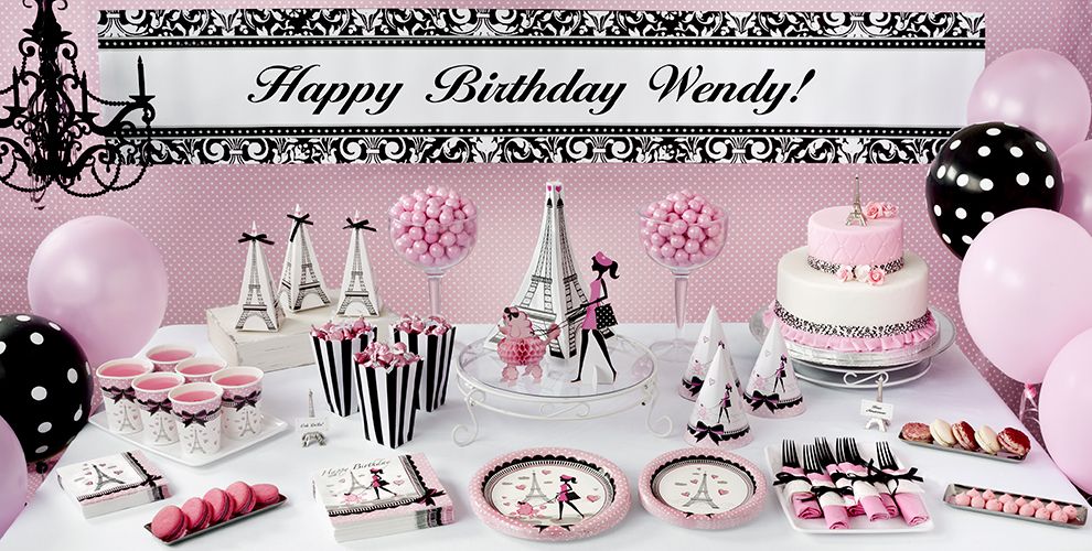 Shop for your favorite party themes at oriental trading. You will love our huge selection of birthday party decorations, themed tableware, solid color tableware and holiday decorations. We also sell nfl team party decorations and ncaa team party supplies at discount. For a more formal look, go with black and white decorations in french patterns with posters or photos of paris scenes. Prints available for the thank you cards & invitations.